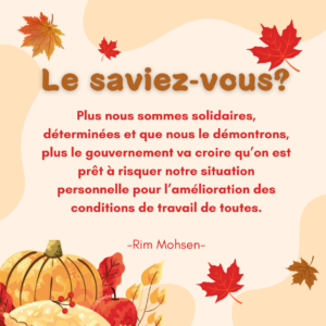 C’est avec 95% que les RSE présentes dans les différentes rencontres au Québec qui ont eu lieu du 3 au 30 septembre ont voté en faveur du mandat de grève.