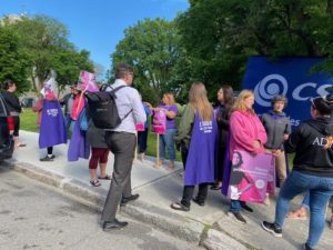 Lors du CSA du 12 juin dernier, vos ADIM en ont profité pour faire une action devant le bureau du ministère de la famille de Québec. Nous revendiquons pour une harmonisation des pratiques des bureaux coordonnateurs.