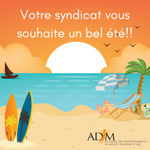 Tel que mentionné dans une parution précédente, la chronique ADIM sera en vacances dès la semaine prochaine et sera de retour le 7 septembre.