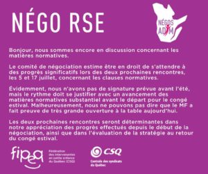 Nouvelle de la dernière rencontre de négociation